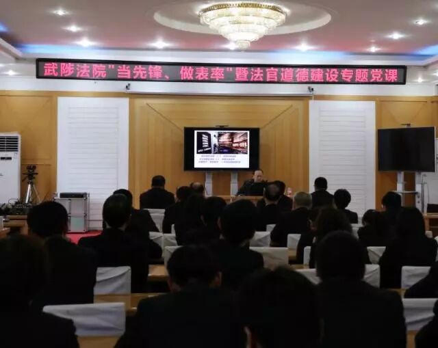 为深入开展“当先锋、作表率”主题活动,2018年4月20日下午,武陟县法院诚邀焦作市委党校、法学教研部朱同杰副教授为干警们做专题讲座,授课题目为《新时代中国法官道德建设的现实思考》,由政治处主任何菊荣主持,党组成员携全体干警参加。