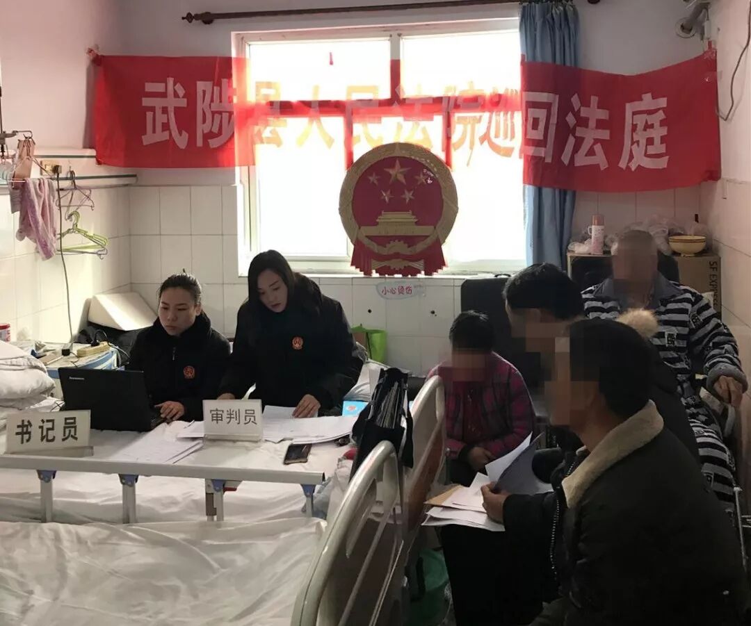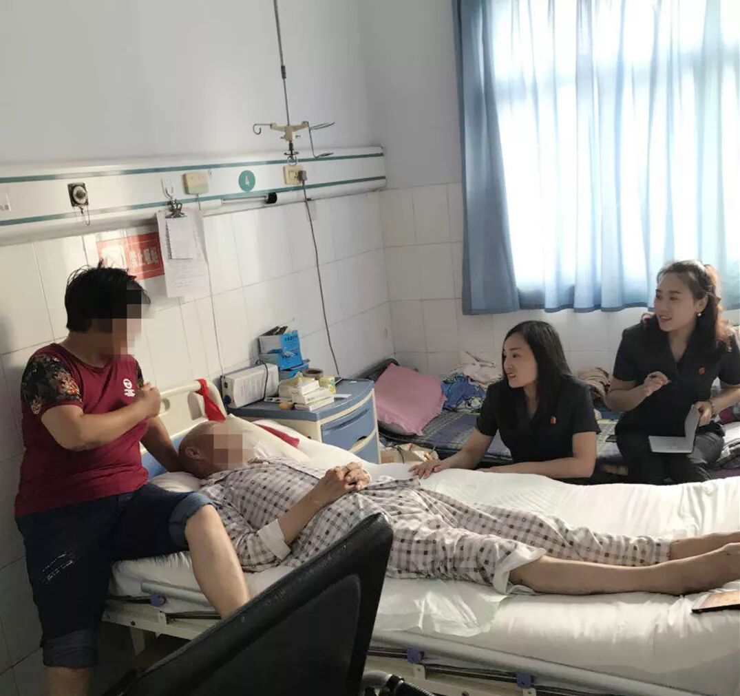 武陟县法院家事团队员额法官位青杰受理此案后,先是通过电话联系安大爷,得知他还在住院治疗,考虑到安大爷年事已高,且疾病缠身,正住院治疗,于是在征得双方当事人同意后,于2018年3月7日,将法庭搬至病房,对此案进行了第一次巡回调解。