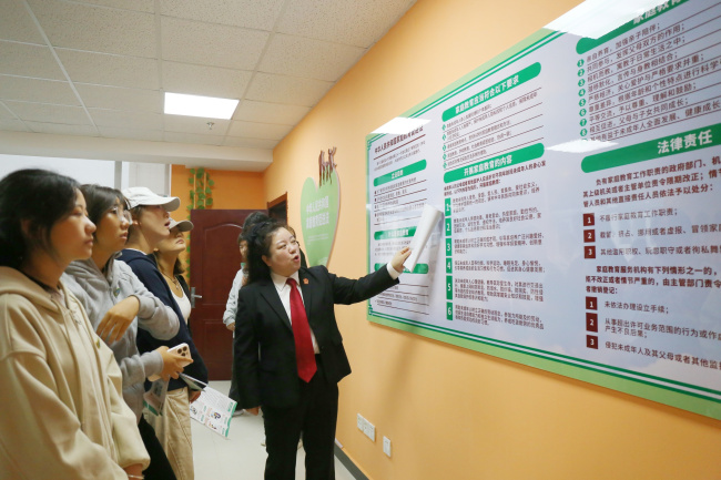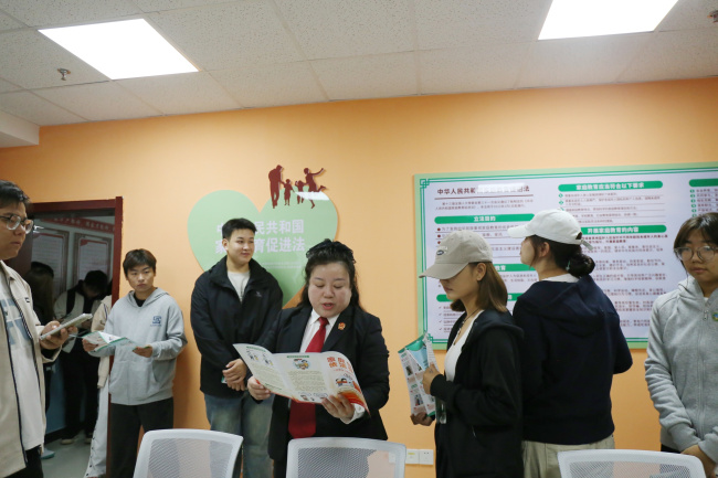 在家庭教育指导站、少年家事审判中心、心灵驿站、法韵沐梦苑等特色场所,温馨的布置、专业化的服务设施引起学生们的浓厚兴趣。法官重点讲解了法院针对青少年群体推出的“法治教育+心理疏导”服务模式,通过模拟法庭、法治课堂、心理干预等创新举措,全方位守护青少年健康成长,让学生们“沉浸式”感受司法温度与关怀。