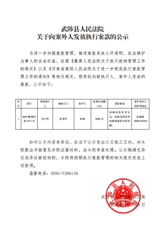 武陟县人民法院关于向案外人发放执行案款的公示(2025年第4期)